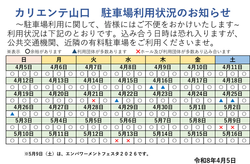 カリエンテ山口からのニュース・お知らせです。